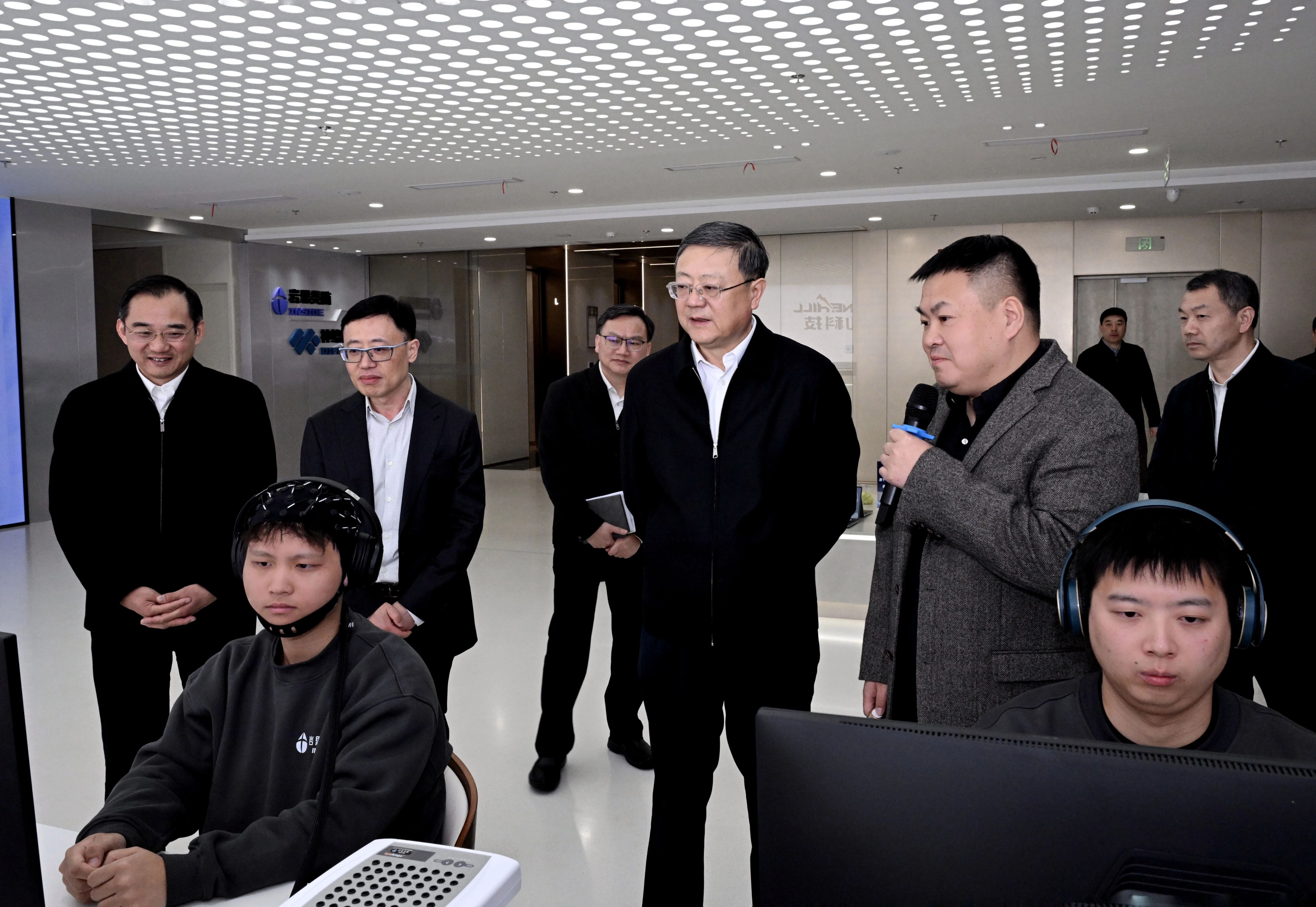 作为上海国际科技创新中心建设的核心承载区,张江科学城正按照《聚焦张江再出发加快建设国际一流科学城行动方案》,全力推进科创布局优化、战略科技力量培育、一流企业培育、科创人才引育和科创生态提升“五大行动”。位于核心区域的张江人工智能创新小镇,目前已入驻人工智能企业近500家。陈吉宁来到聚焦服务成长期企业加速发展的模力社区,察看光本位科技、极豆科技、岩山科技等企业最新产品展示,同企业负责人亲切交流,了解企业在光子计算芯片、智能座舱系统、类脑智能与脑机接口等领域的研发创新、技术突破和场景应用情况,询问企业下一步发展计划、需要哪些政策服务支持,希望高科技企业把自身发展与城市产业定位、发展方向更加紧密结合起来,聚焦主业、聚力攻关、集聚人才,不断增强核心竞争力,在同频共振中实现合作共赢。