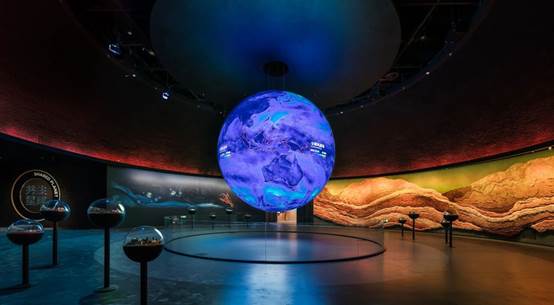 一颗巨大的蓝色星球直接“搬”到了场馆里,超级震撼。影片、互动和数据可视化的形式,让地球仿佛“活”过来一般,不同的地球生态在眼前不停转动,你仿佛置身于外太空,遥望地球这颗美丽的星球。爱拍照的你,绝对不能错过这个绝佳的出片地点。