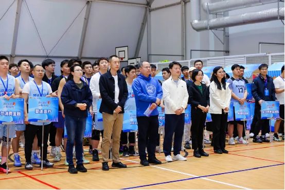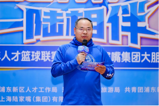 陆家嘴集团党委副书记王韫为篮球赛抛球开赛。